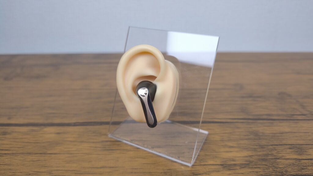 今回のAir5 Pro+はスティックタイプになっていて、ちょっとやそっとではずれない設計になっている。そして、人間工学に基づいた設計になっているから、フィット感もよい。ワイヤレスイヤホンは作業しながら使えるという大きなメリットがあるから、装着感が良いのはめちゃくちゃ重要。